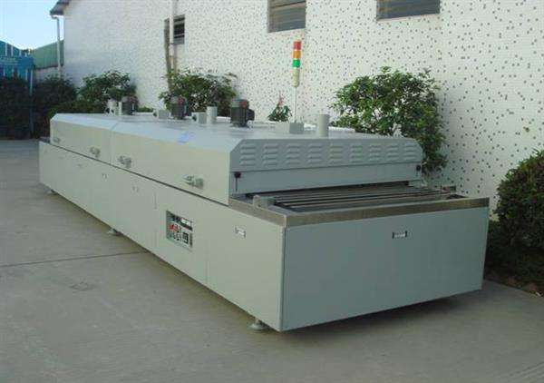 )隧道式熱風(fēng)爐設(shè)有紅外IR、光固及冷卻系統(tǒng),廣泛應(yīng)用于絲網(wǎng)印刷、噴染、電鍍以及印刷電路等行業(yè)的烘干、除濕等工藝,還可以用于食品、紡織品、壓鑄小件、表面涂裝等工業(yè)的干燥、烘烤等。可任意于國產(chǎn)、進口印刷機進行聯(lián)機,組成完善的生產(chǎn)流水線。